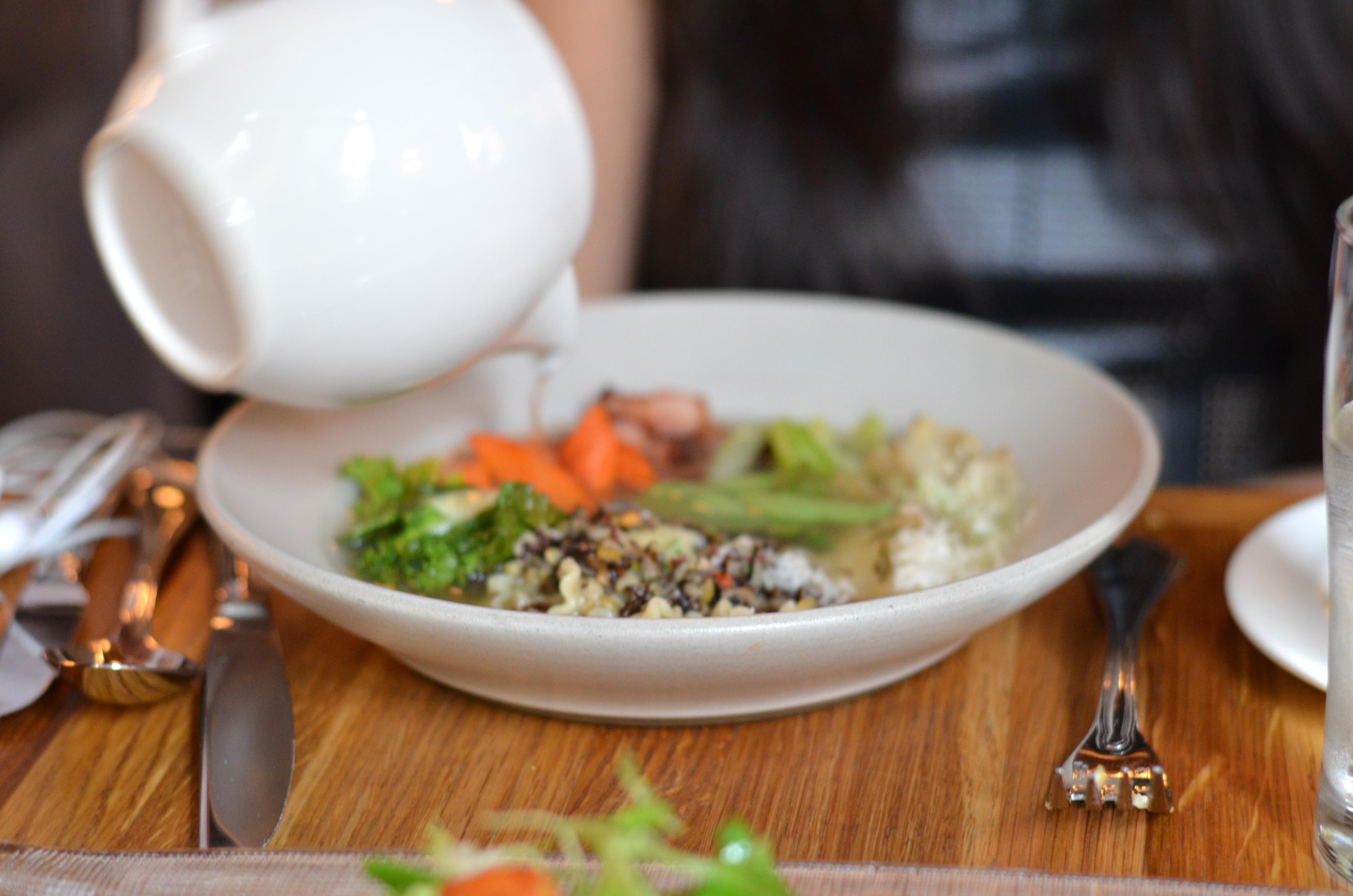 My friend Leiti wanted to try this beef carpaccio with greens and a vegetable soup, with the consommé poured tableside.