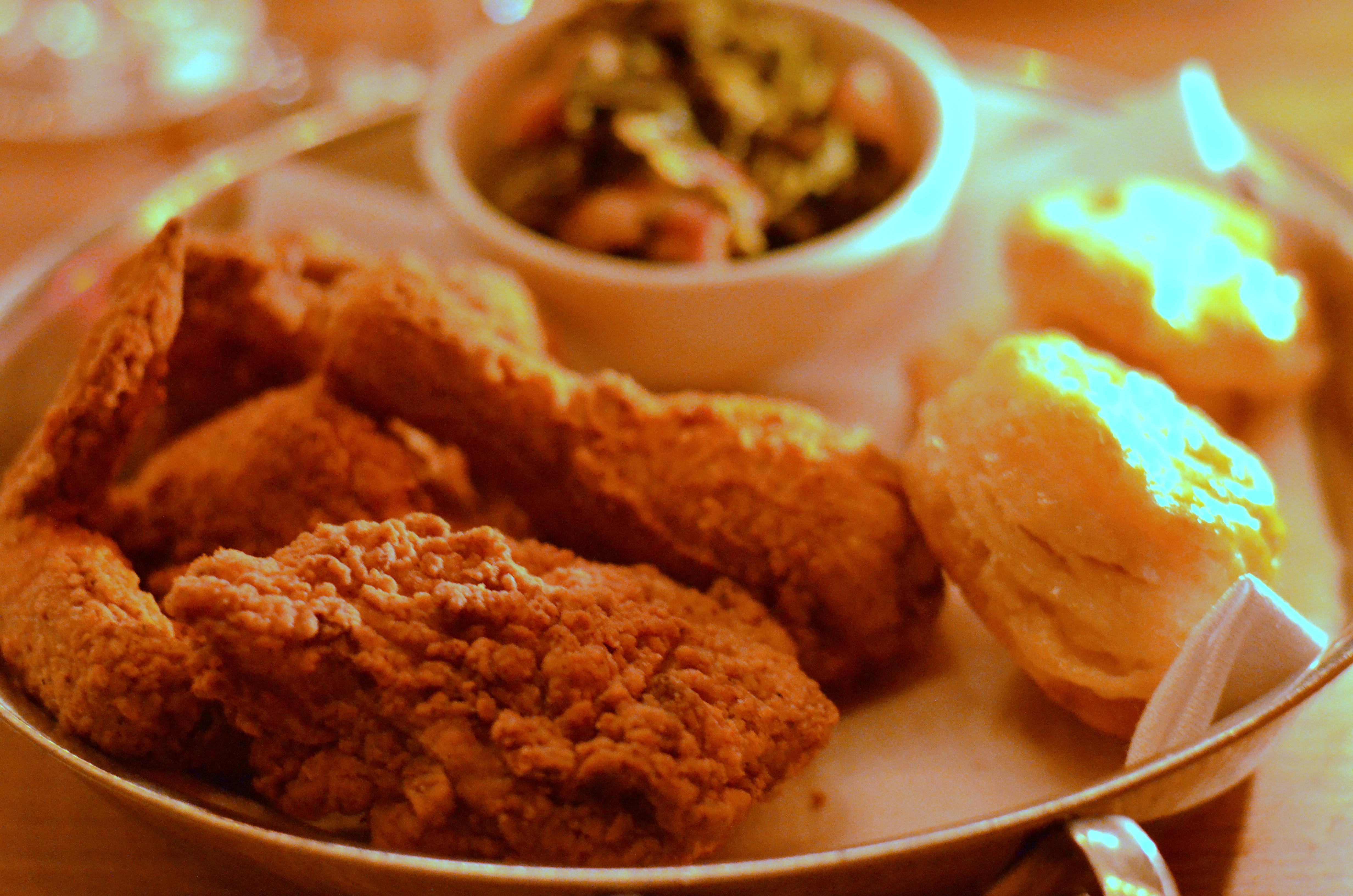 The chicken was excellently made, with a thick shell (as I like it) and an undercurrent of paprika (which I washed out in honey and hot sauce, as any self-respecting fried chicken eater would). The biscuits were the scene-stealers of the show – flaky nuggets of buttery gold.