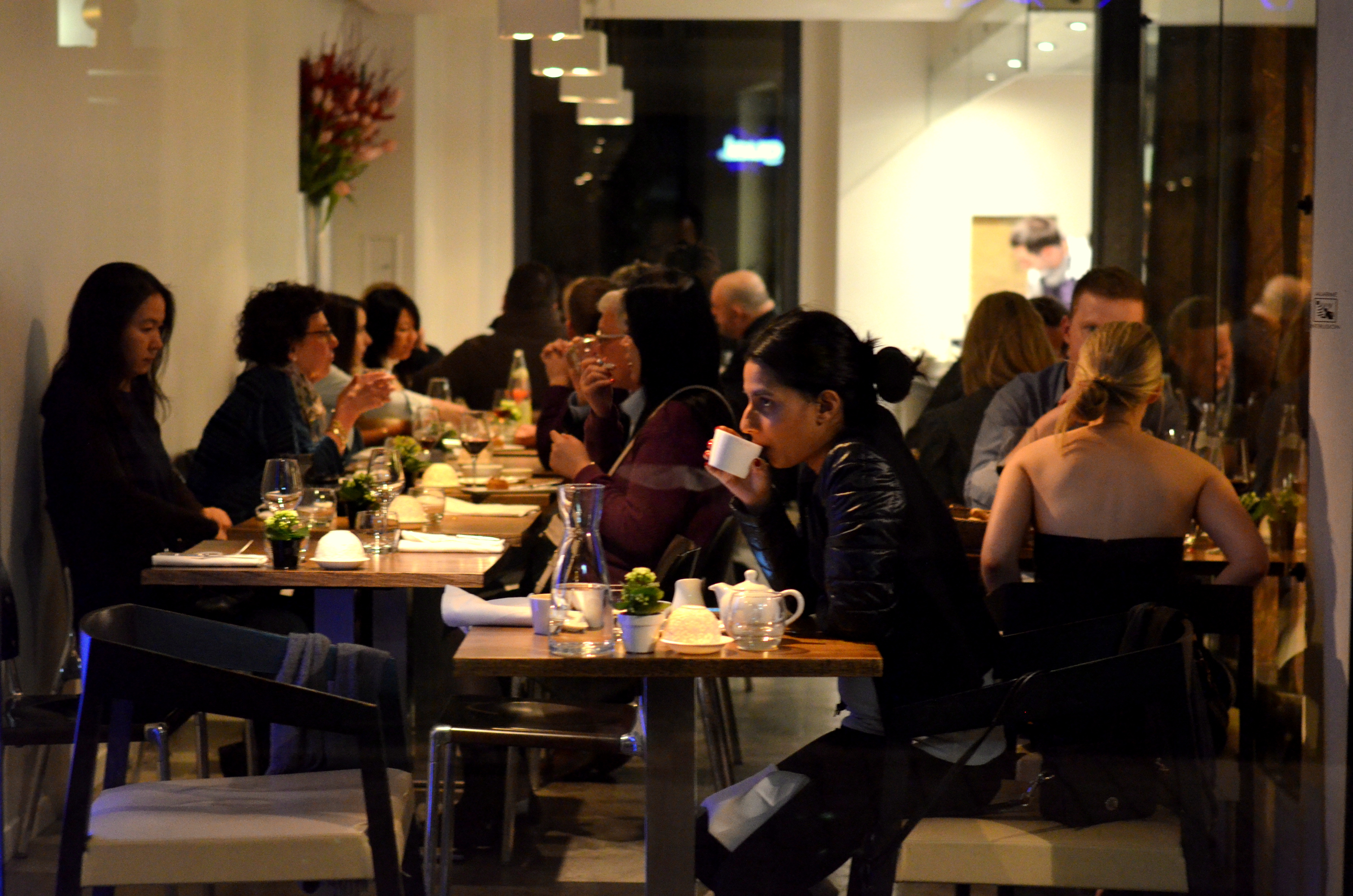 Our second night in Paris was spent in the dining room at Daniel Rose’s Spring – its elegant floor-to-ceiling windows peering out onto a quiet cobblestone’d backstreet, an openness that extends to the restaurant’s tidy cold kitchen. The design is both industrial chic and rustic, clean lines of white, wood, and iron alongside the dull gleam of copper pots and warped support beams from another era, encased in glass.