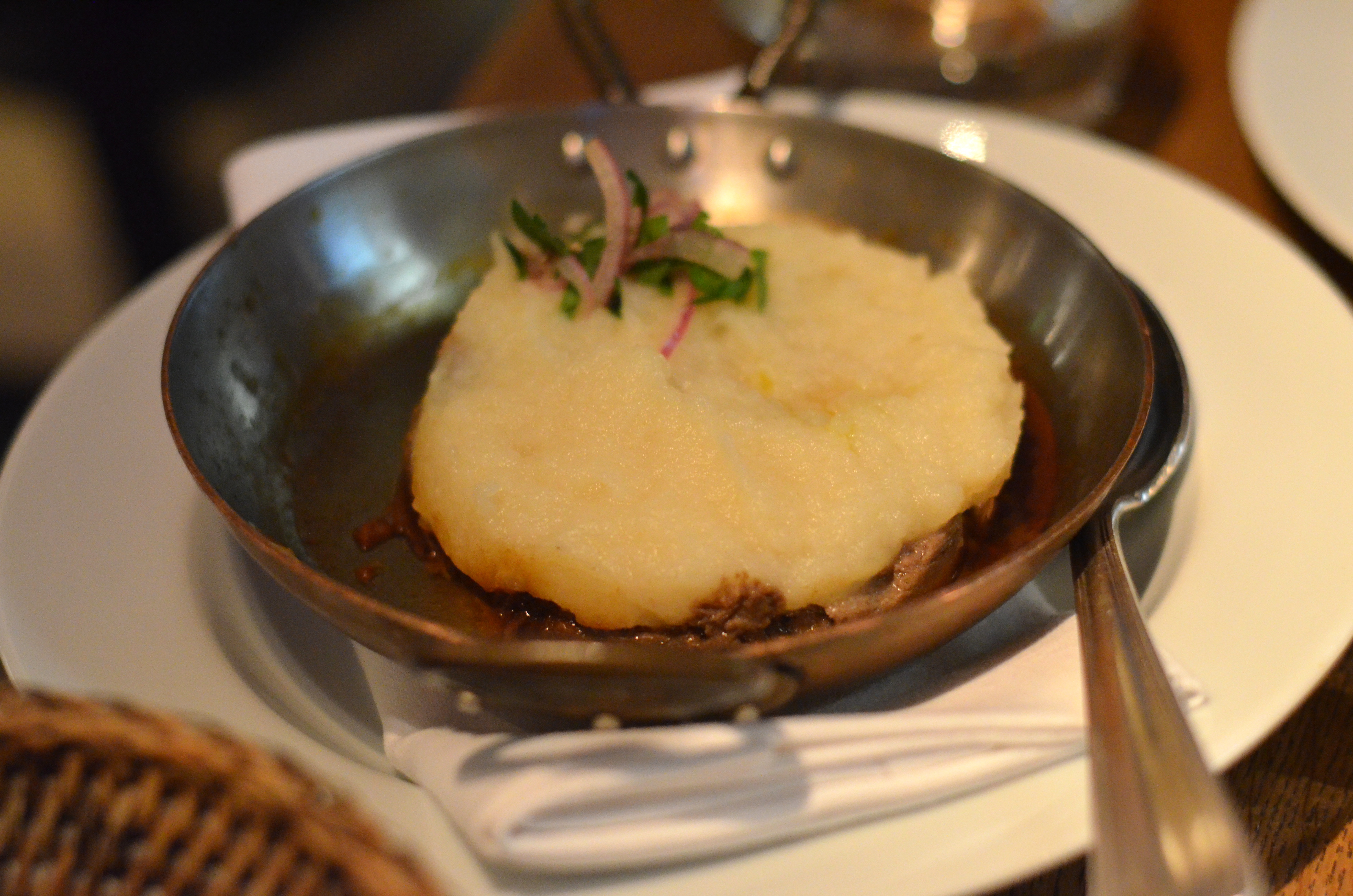 After the bread, a filet of red mullet with baby spinach, squid, and shredded Galician beef. Again the broth was very satisfying, enhanced by the beef’s pungent salinity.