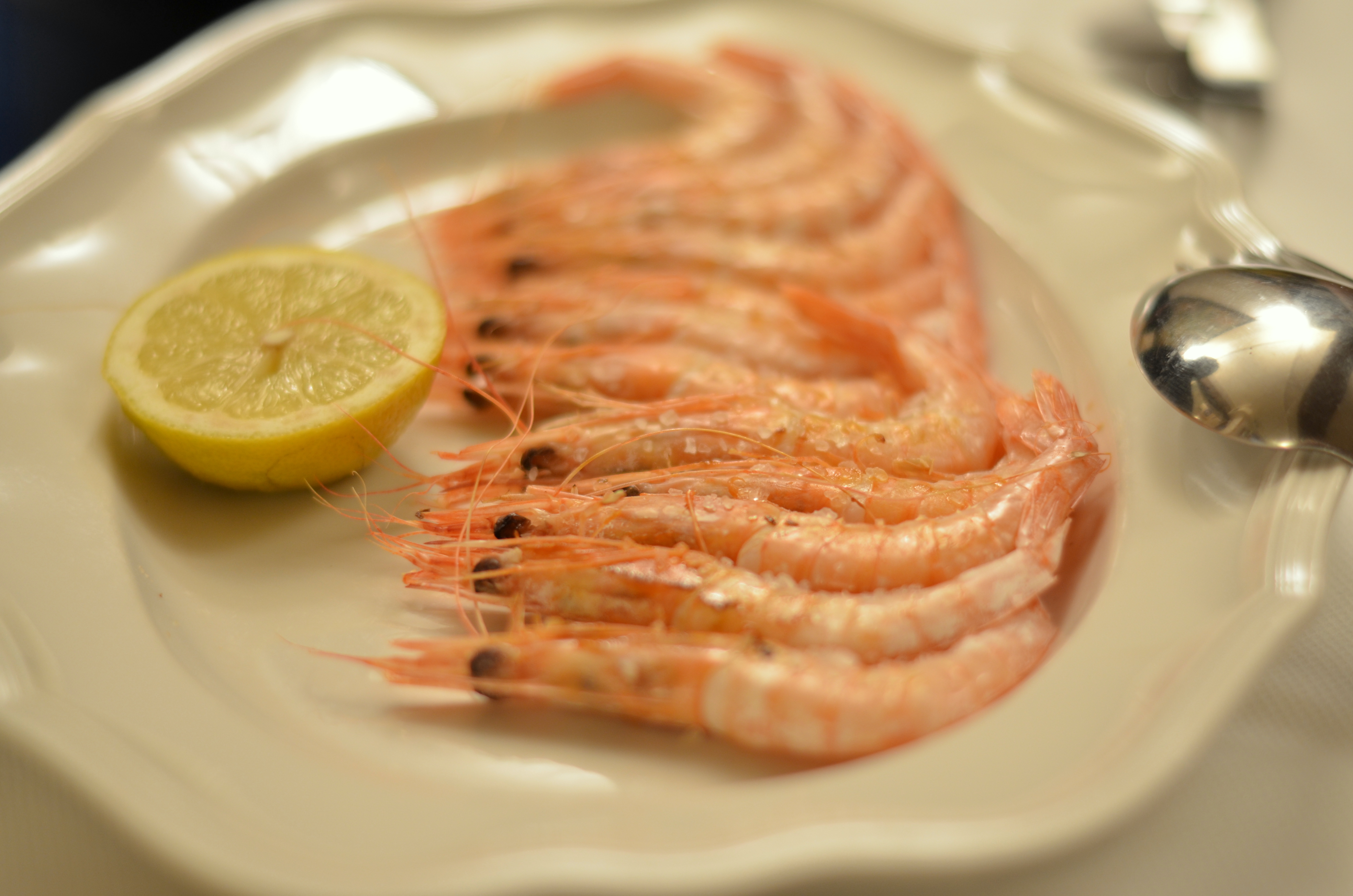 These head-on shrimp, seasoned with nothing but rock salt, lightly grilled, the head juices perfectly reduced to a sunrise orange and intensely savory, the flesh light and juicy.