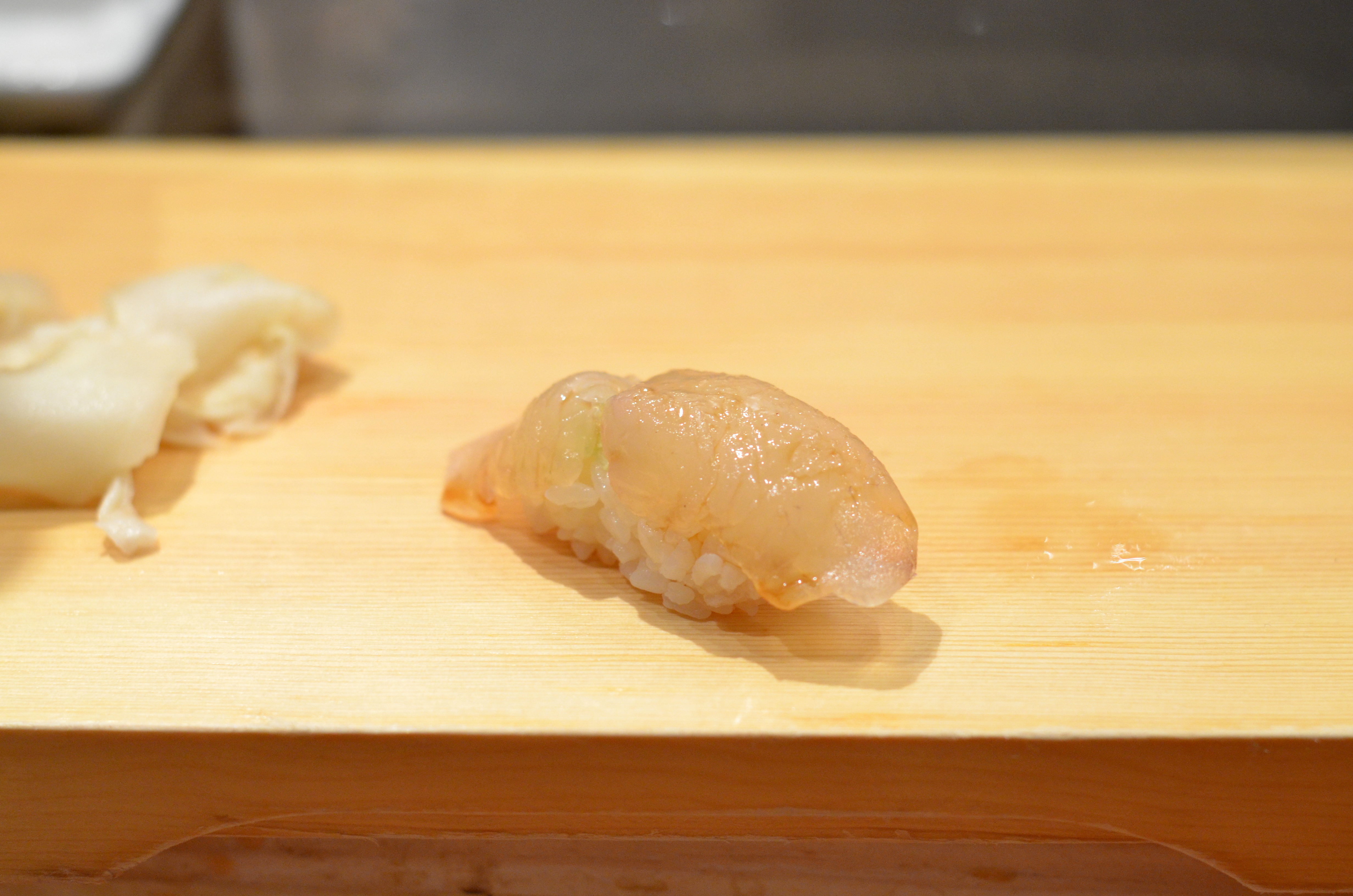 Next up, winter Spanish mackerel with a bit of ginger and scallion. Mackerel’s never been my favorite fish (especially cooked), but the curing process takes a bit of that funky fishiness out and the ginger provides ample balance.