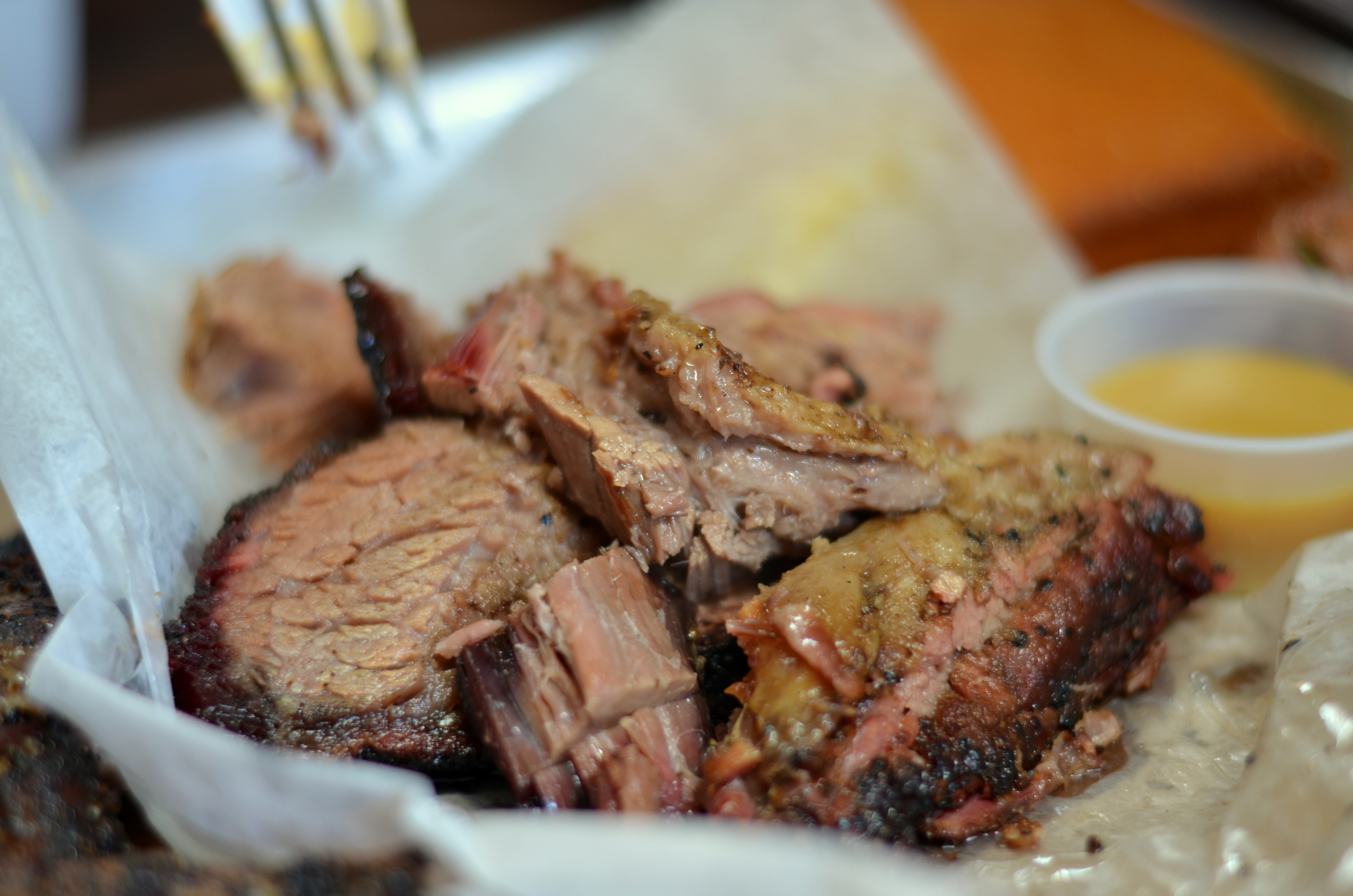 The ribs and brisket were fantastic. I don’t know the intricacies of barbecue enough to talk details, but meat was smokey and balanced in texture (with enough chewiness to remind you that these were indeed ribs and good ones at that). The coarsely cracked black pepper added to the crunch of charred ends.