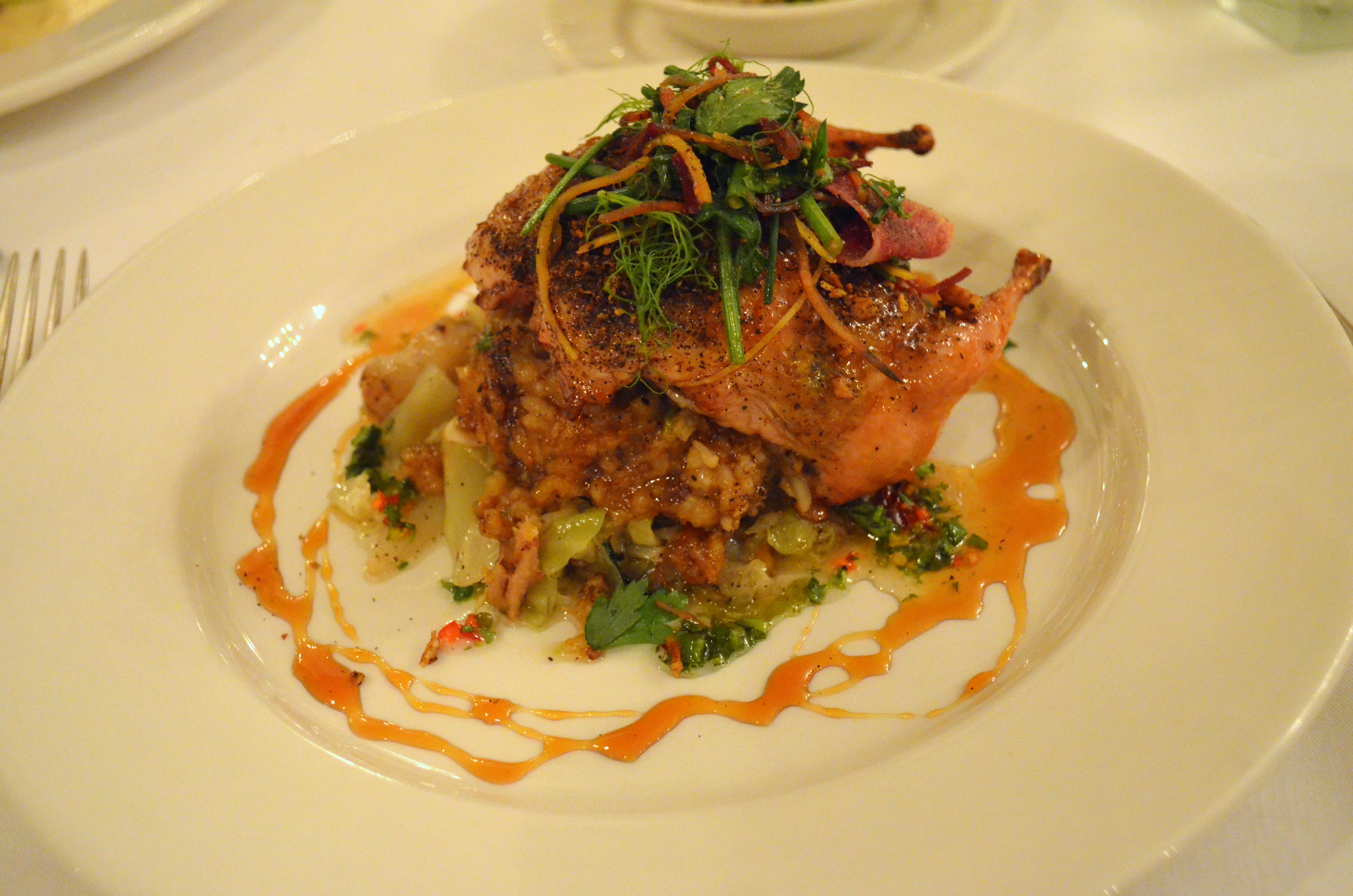 I had the chicory coffee-lacquered quail, with risotto and greens, plus a little more Tabasco pepper jelly.