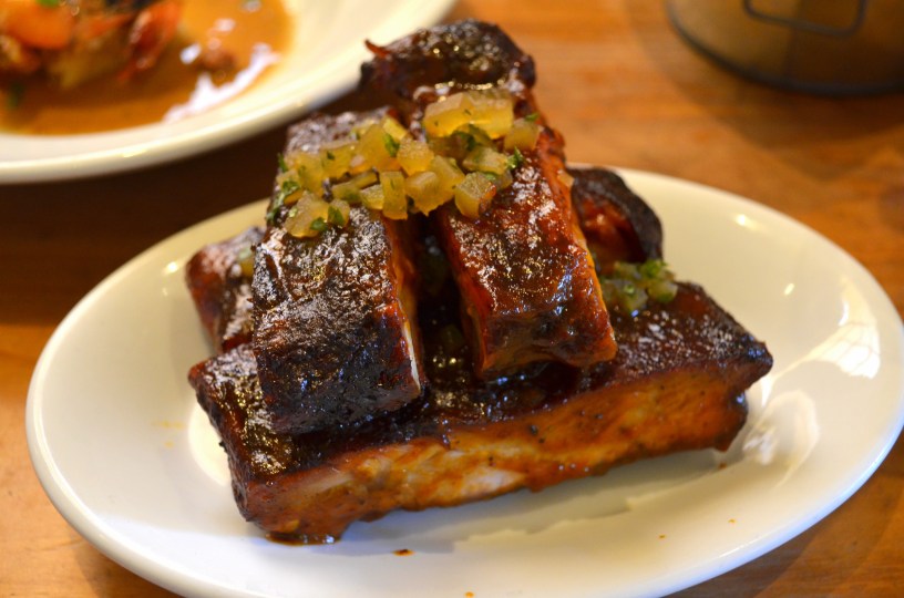 These sticky, saucy ribs, with minty watermelon relish, had a nice balance of fleshiness, fat, and tenderness.